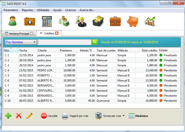 • Créditos Mensual, Quincenal, Semanal, Diario, Anual, Etc.